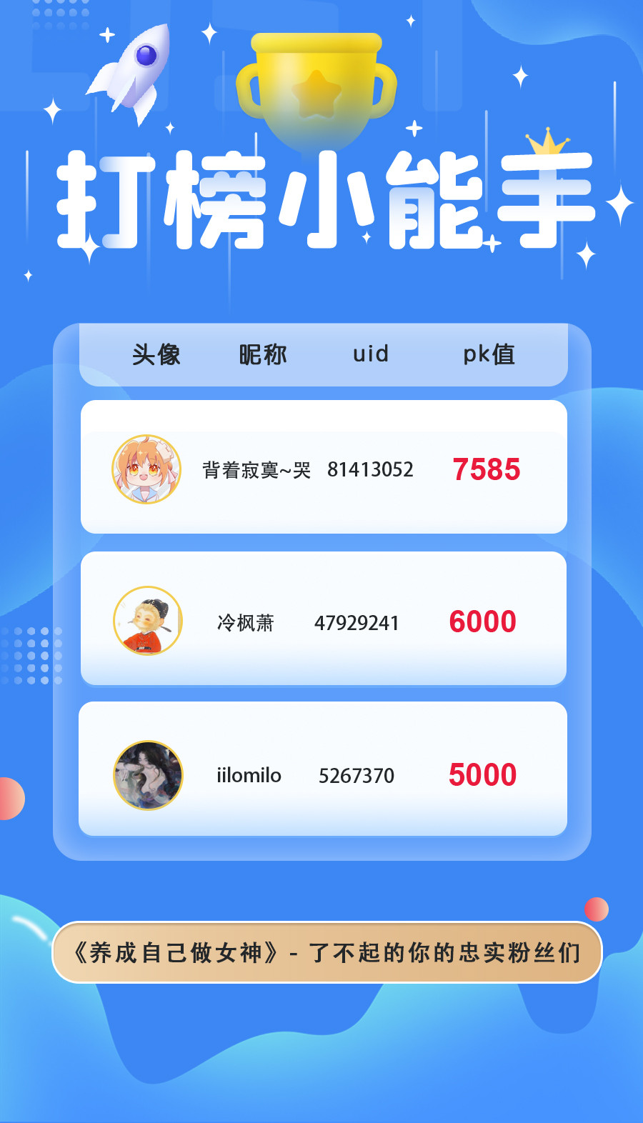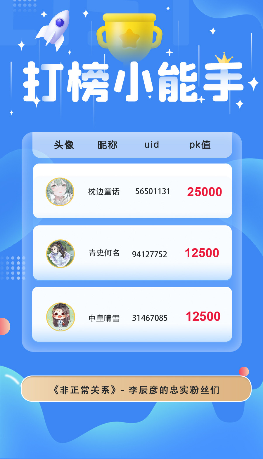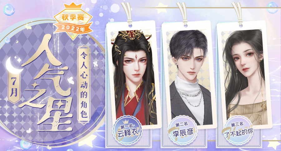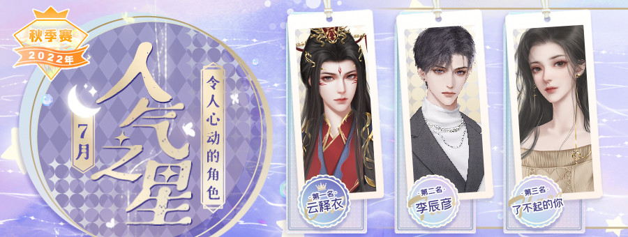 ps:为三位人气角色表白卡投出PK值最多的前三位小伙伴(共9位)的66朵鲜花券(有效期365天)+20张充一赠三券的奖励将于2022/8/25前全部发放完毕~请耐心等待哟!