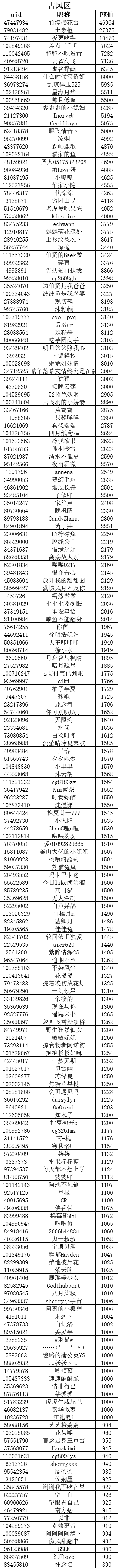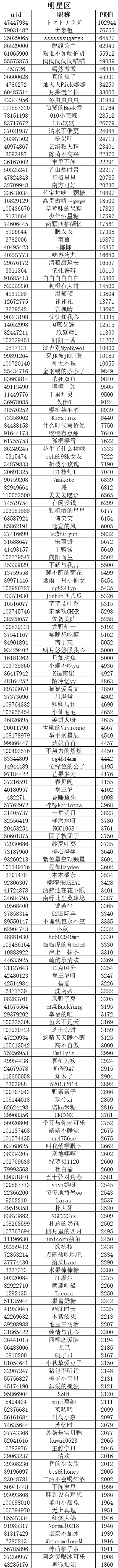 ps:为三位人气角色表白卡投出PK值最多的前三位小伙伴(共9位)的66朵鲜花券(有效期30天)+20张充一赠三券的奖励将于1月12日前全部发放完毕,请耐心等待呦~