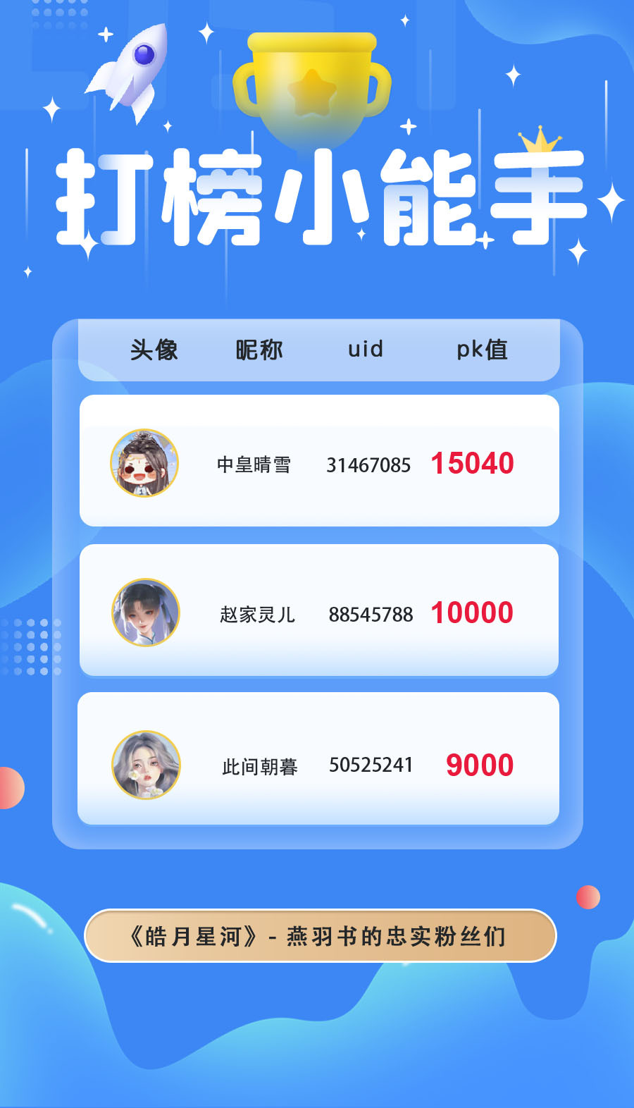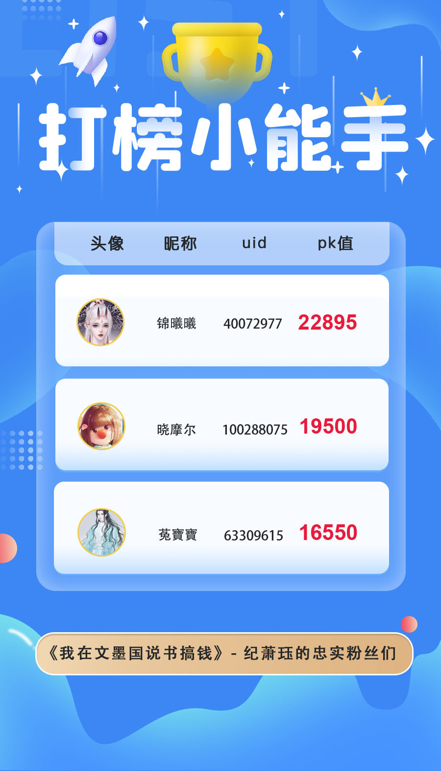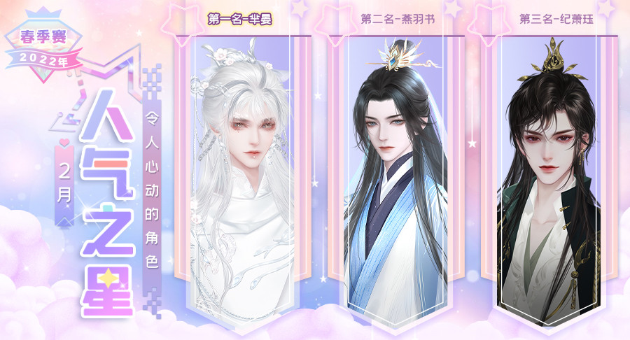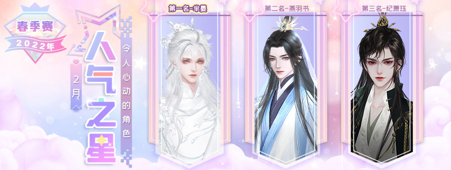 本月在大家的热情打投下胜出的是:芈晏、燕羽书、纪萧珏,恭喜他们啦!