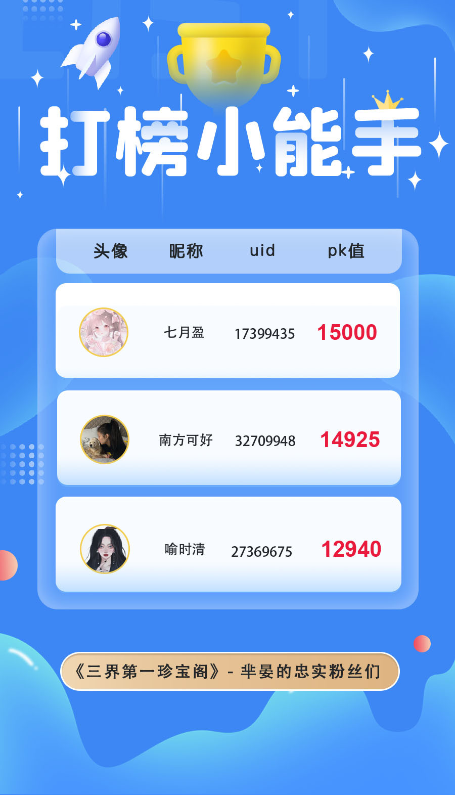 ps:为三位人气角色表白卡投出PK值最多的前三位小伙伴(共9位)的66朵鲜花券(有效期365天)+20张充一赠三券的奖励将于2022/3/15前全部发放完毕~请耐心等待哟!