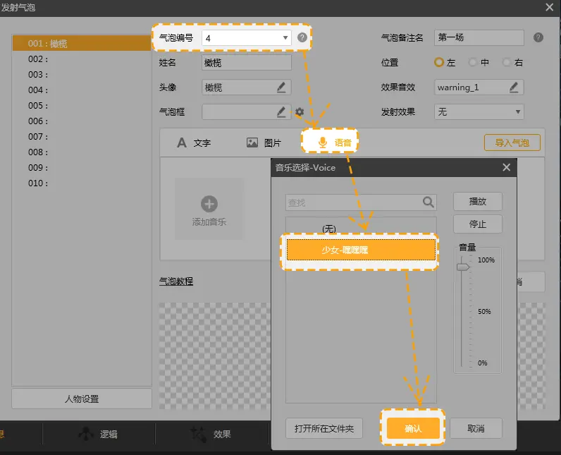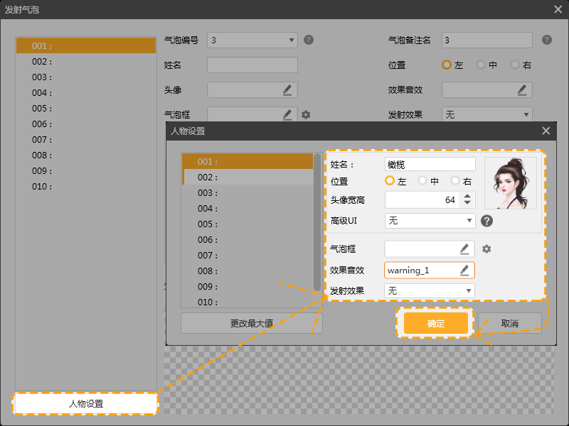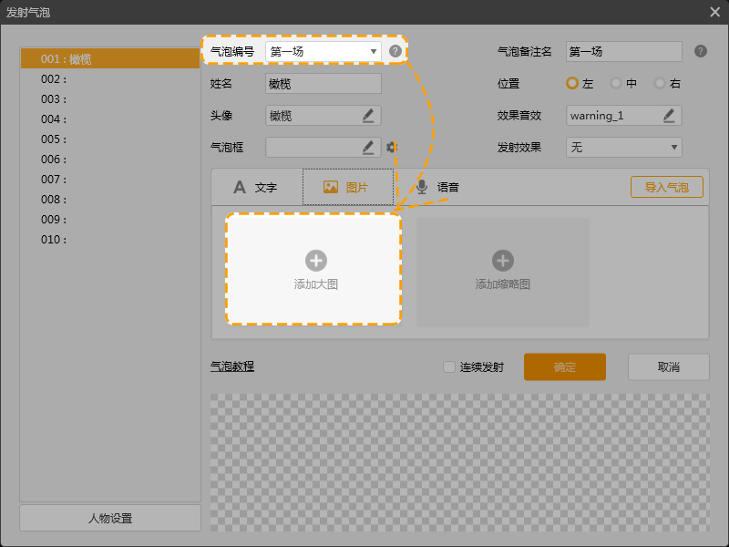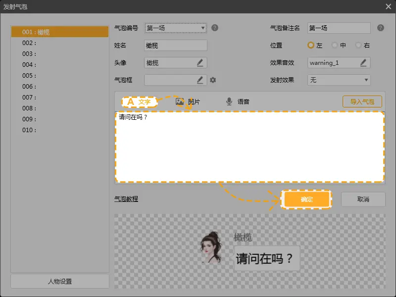 3.设置气泡编号时,请注意气泡是否与所用立绘编号相冲突,避免编号相同而被覆盖的情况。