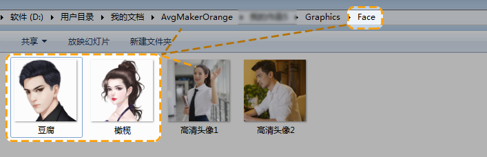 第三步,将需要用到的头像素材放置到工程文件夹中的“Graphics -Face”文件夹下。