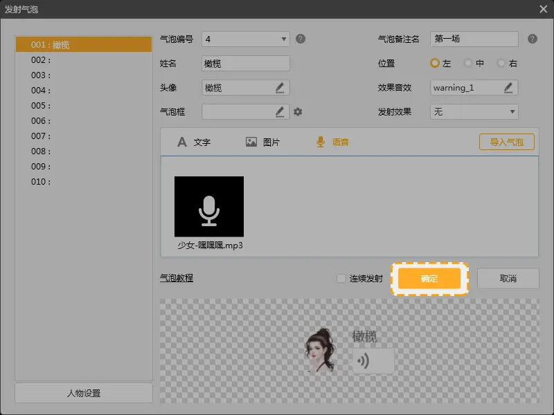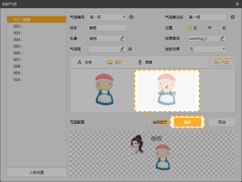7. 人物角色和气泡位置应正确勾选,避免出现“话不对人”的情况。