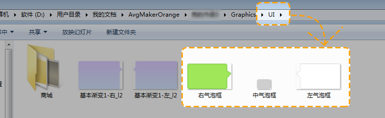 第四步,将所用到的气泡框底图放置于工程文件夹中的“Graphics-UI”文件夹下。