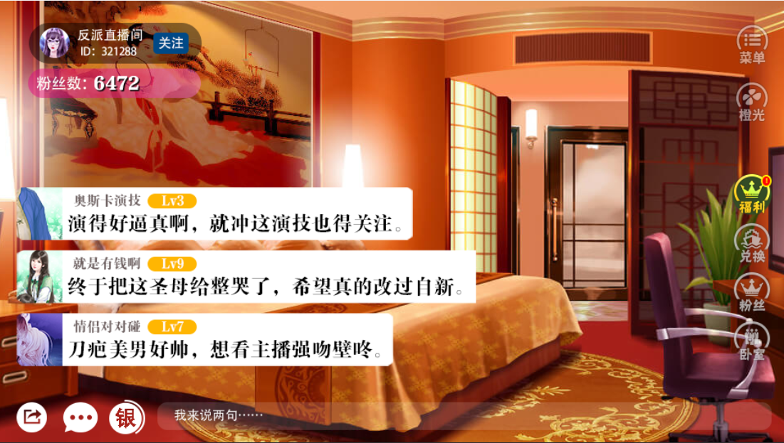 主角为了爆火生产各种雷人狗血文,不曾想一场意外令小说世界成真,女主不得不与阎王签下协议,穿越到自己写的小说,向冥界+人界直播解说,如何用反派身份教极品主角们做人。作品把直播和穿书结合,玩家不仅可以扮演女主体验苏爽打脸的剧情,还可以窥探直播时的弹幕实时吐槽,大大拉近了作品与玩家的距离。