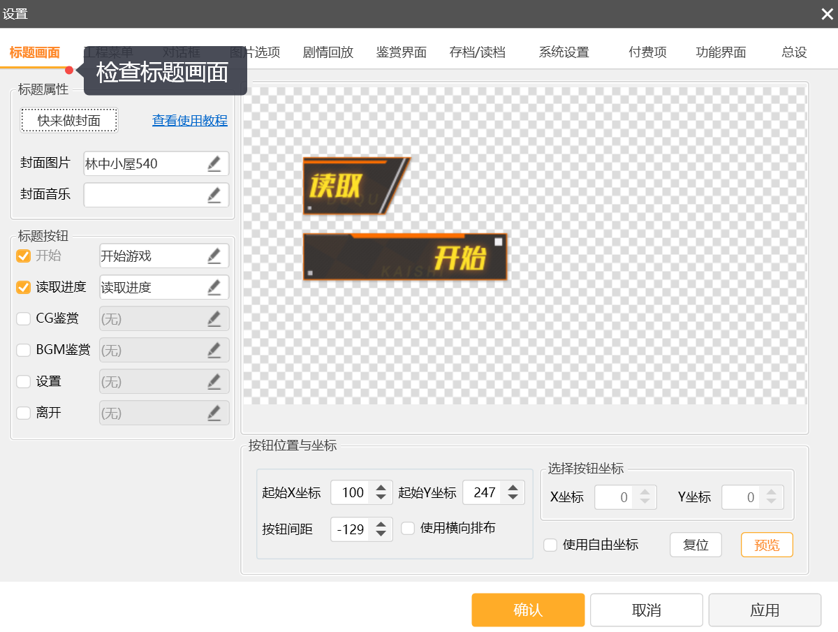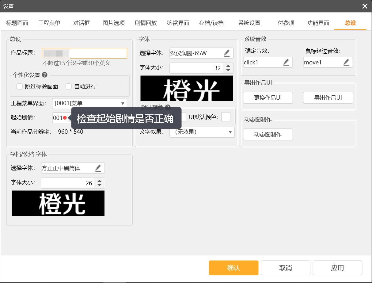 (3)如果只有单个作品出现黑屏情况,那么请检查,设置中的标题画面和起始剧情是否正确。