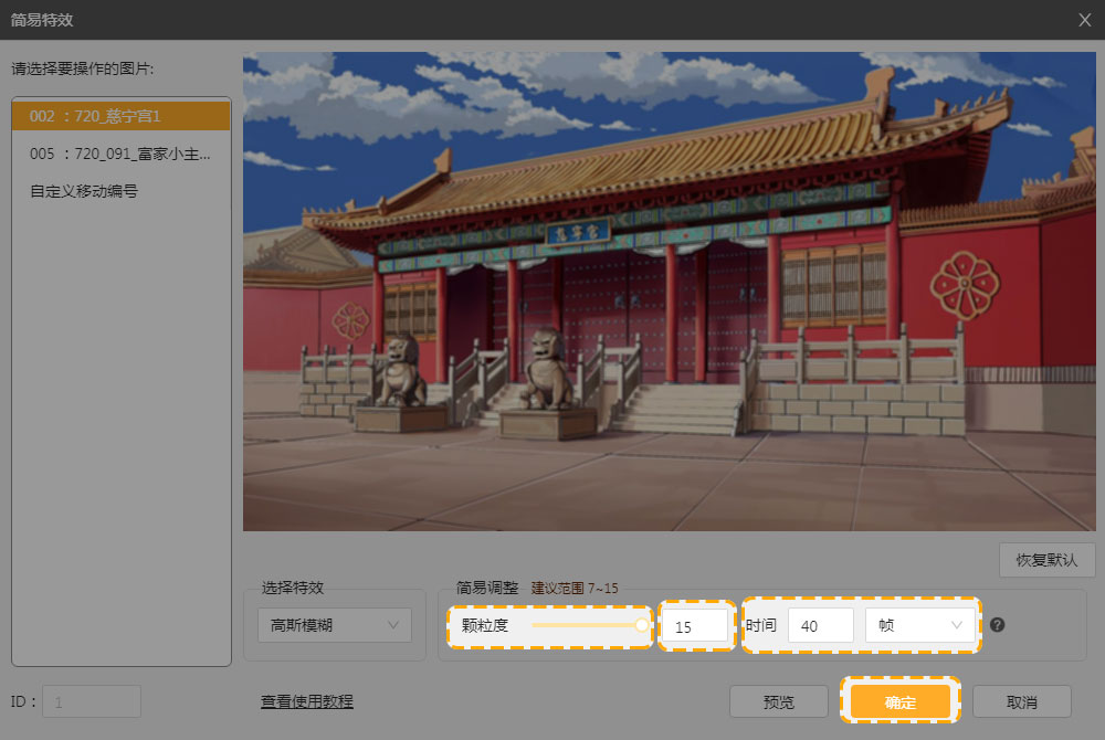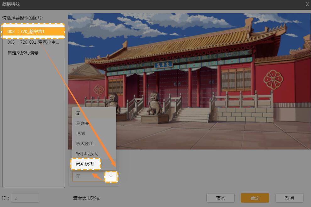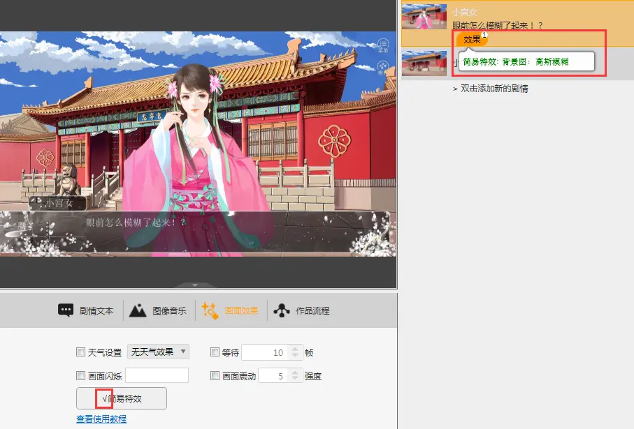 更多效果可以在工具中进行尝试,建议使用简易特效时,对图片进行裁剪,否则可能会出现图片过大,画面、剧情卡顿的情况。