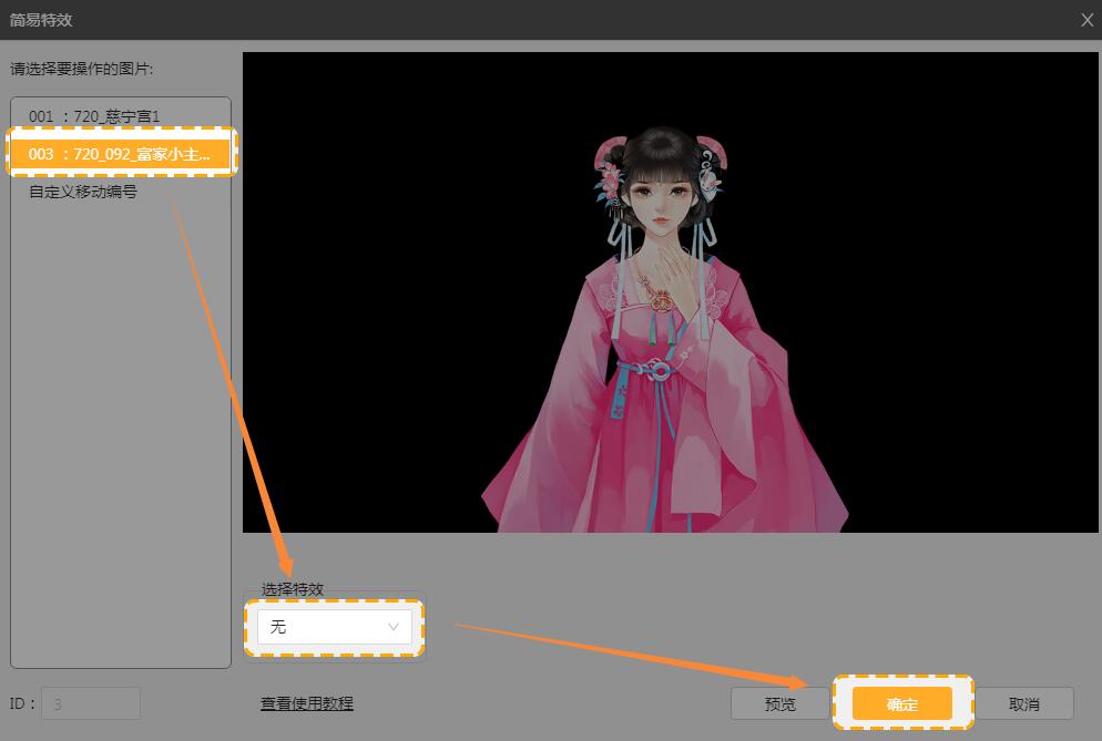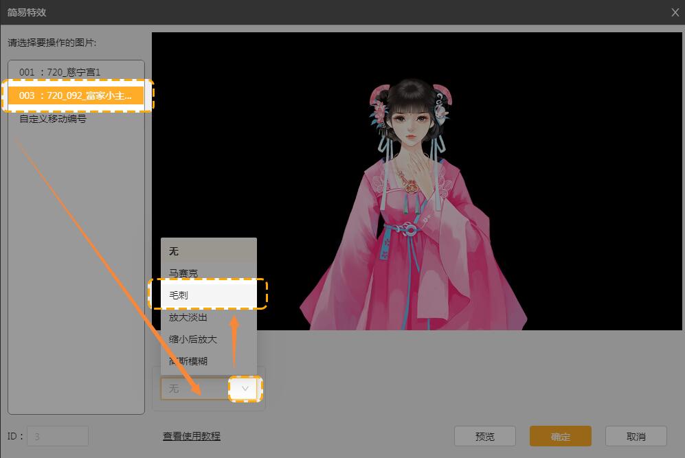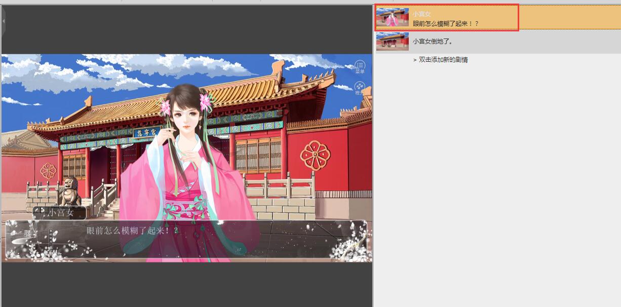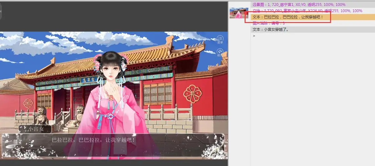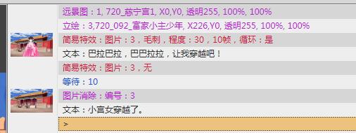 例如,要在立绘出现之后,小宫女在说话的剧情时,立绘出现毛刺的效果,那就选中这个文本。