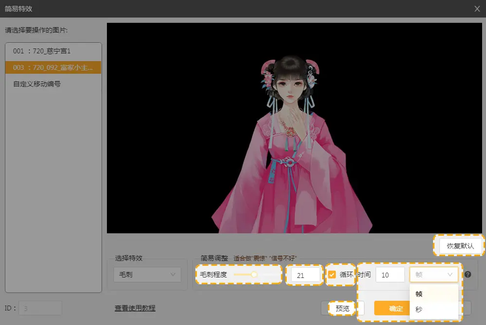 ③选择效果循环播放,还是固定帧数/秒数播放。