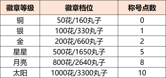 3.称号点数:称号点数根据消耗比例及作品徽章总称号点数计算,称号点数=作品总徽章称号点数*消耗比例。