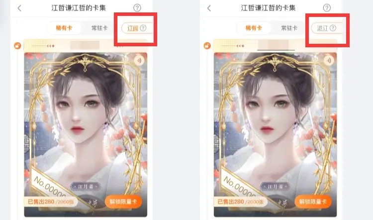 ③用户可[订阅]卡集-稀有卡,当作者设置该卡集内的限量卡定时上线后,订阅该卡集的用户将在限量卡定时上线前一小时收到消息提示。