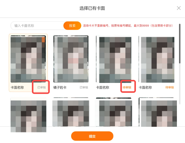 a.如果卡面已通过审核,卡面名称下方出现【已审核】标志,可直接点击提交卡面,进入常规返场流程;