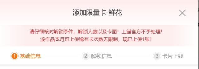 *设置限量卡需要完善【基础信息】、【解锁信息】、【卡片上线】页面后,方可提交上线。